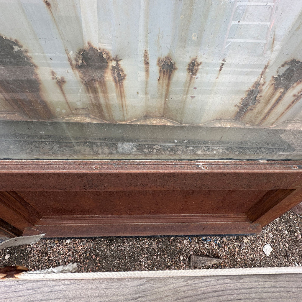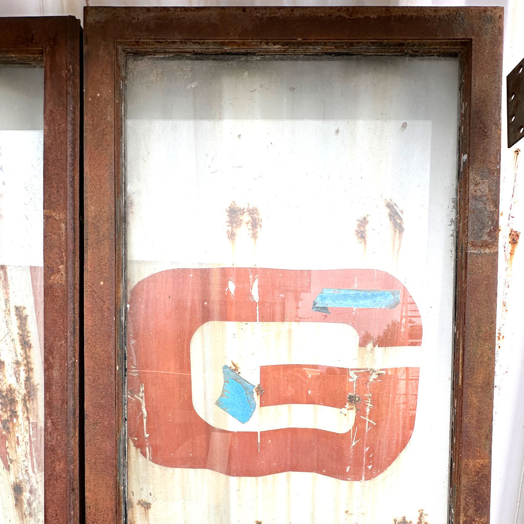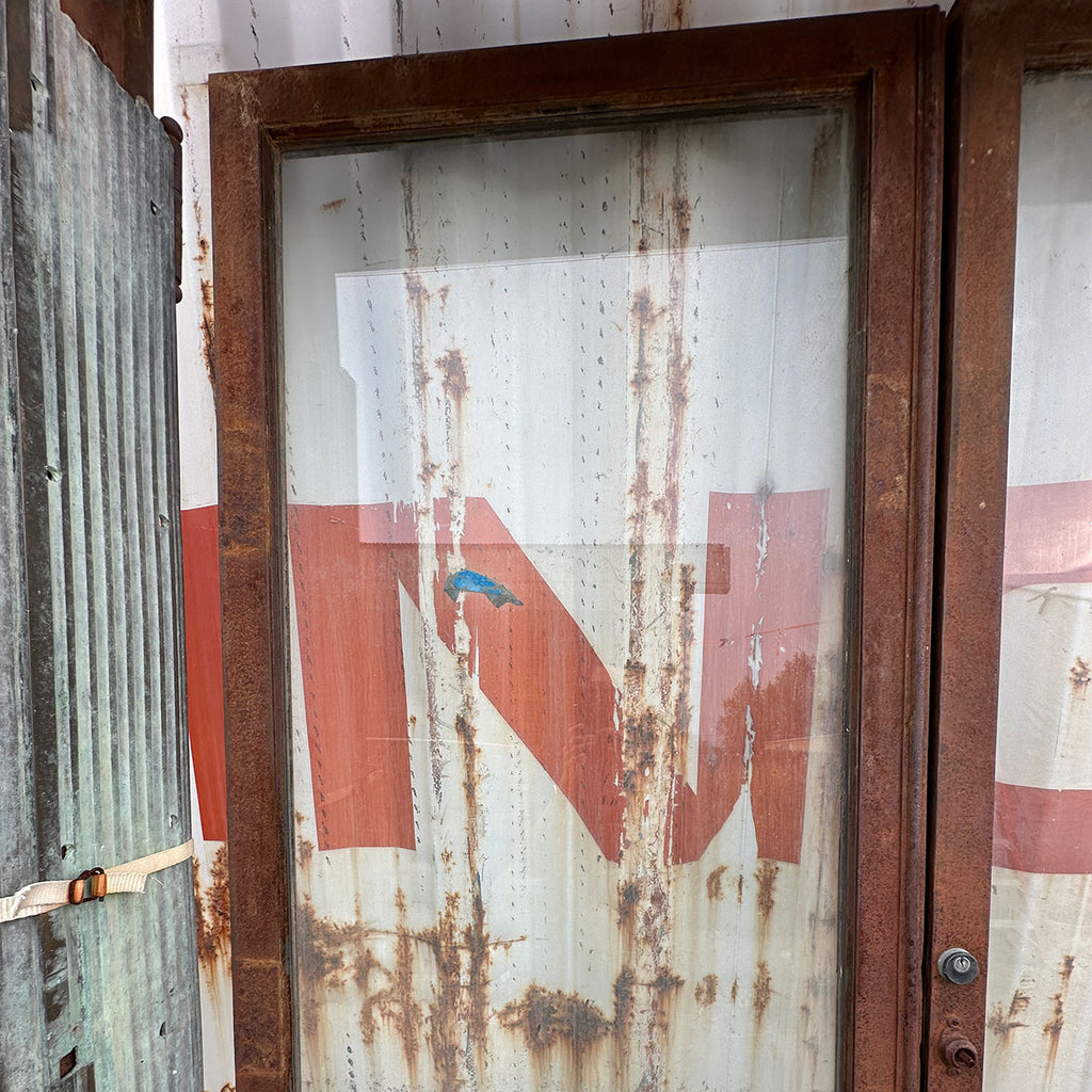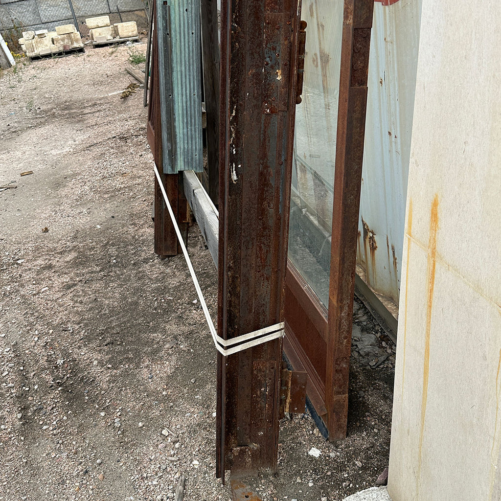 A large antique cast and wrought iron door entry salvaged from a grand historic Denver mansion. With brass threshold. Double sided ironwork. Originally it would have had a glass window.