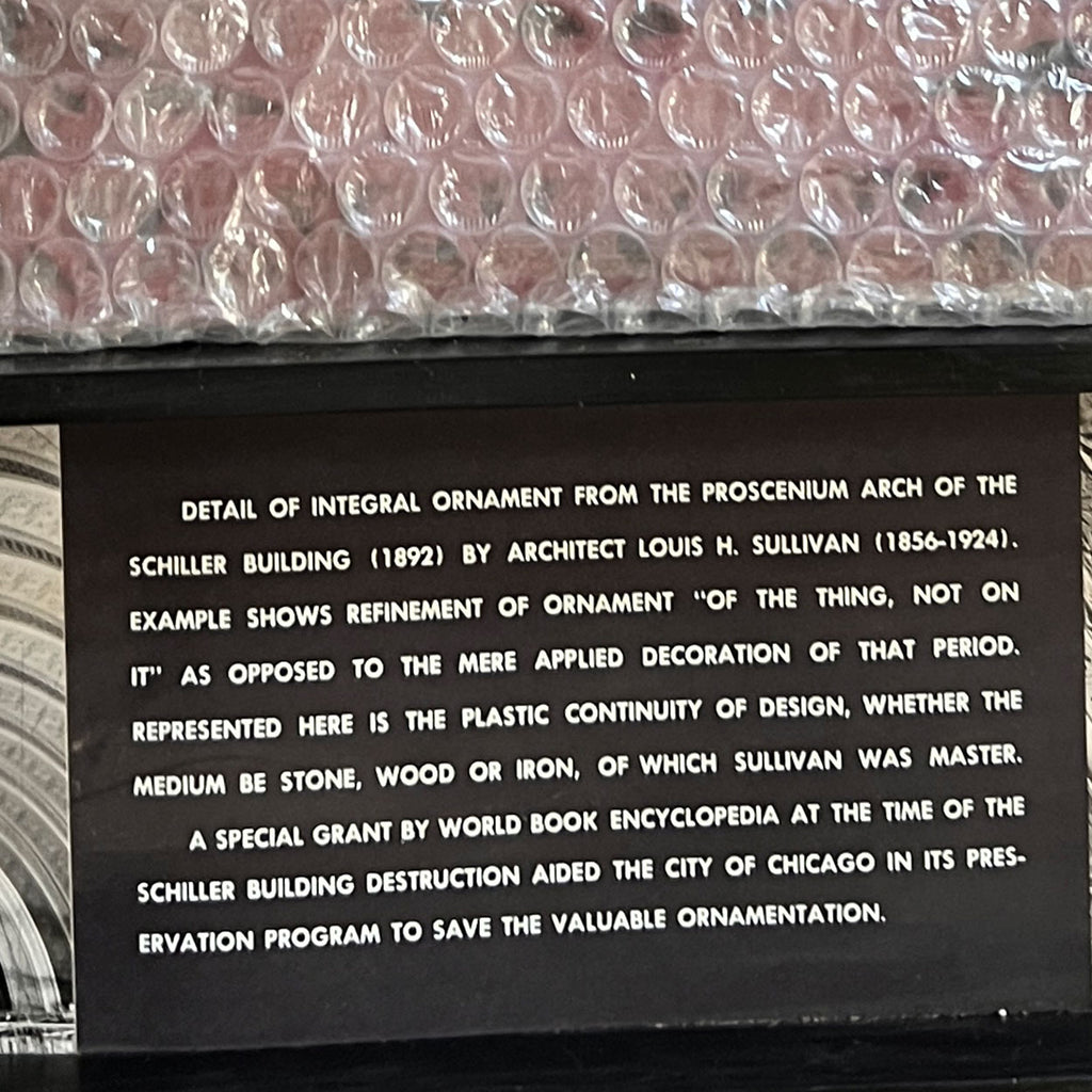 American LOUIS SULLIVAN Garrick Theater Plaster Architectural Ornament American LOUIS SULLIVAN Garrick Theater Plaster Architectural Ornament American LOUIS SULLIVAN Garrick Theater Plaster Architectural Ornament American LOUIS SULLIVAN Garrick Theater Plaster Architectural Ornament American LOUIS SULLIVAN Garrick Theater Plaster Architectural Ornament