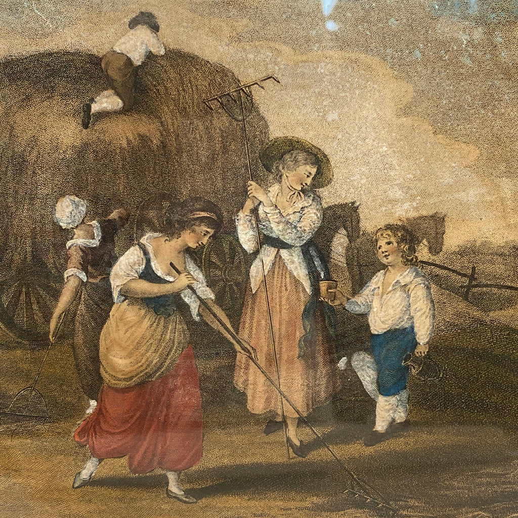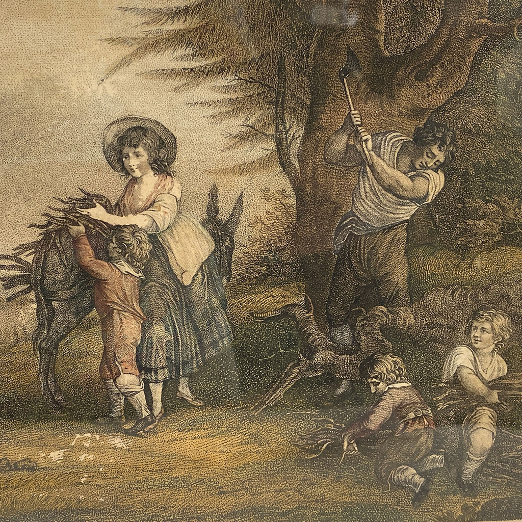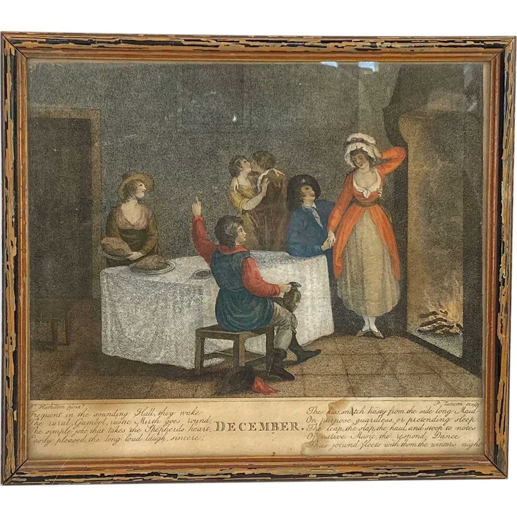Set of four antique colored engravings from the Months calendar series after original works by William Osborne Hamilton.