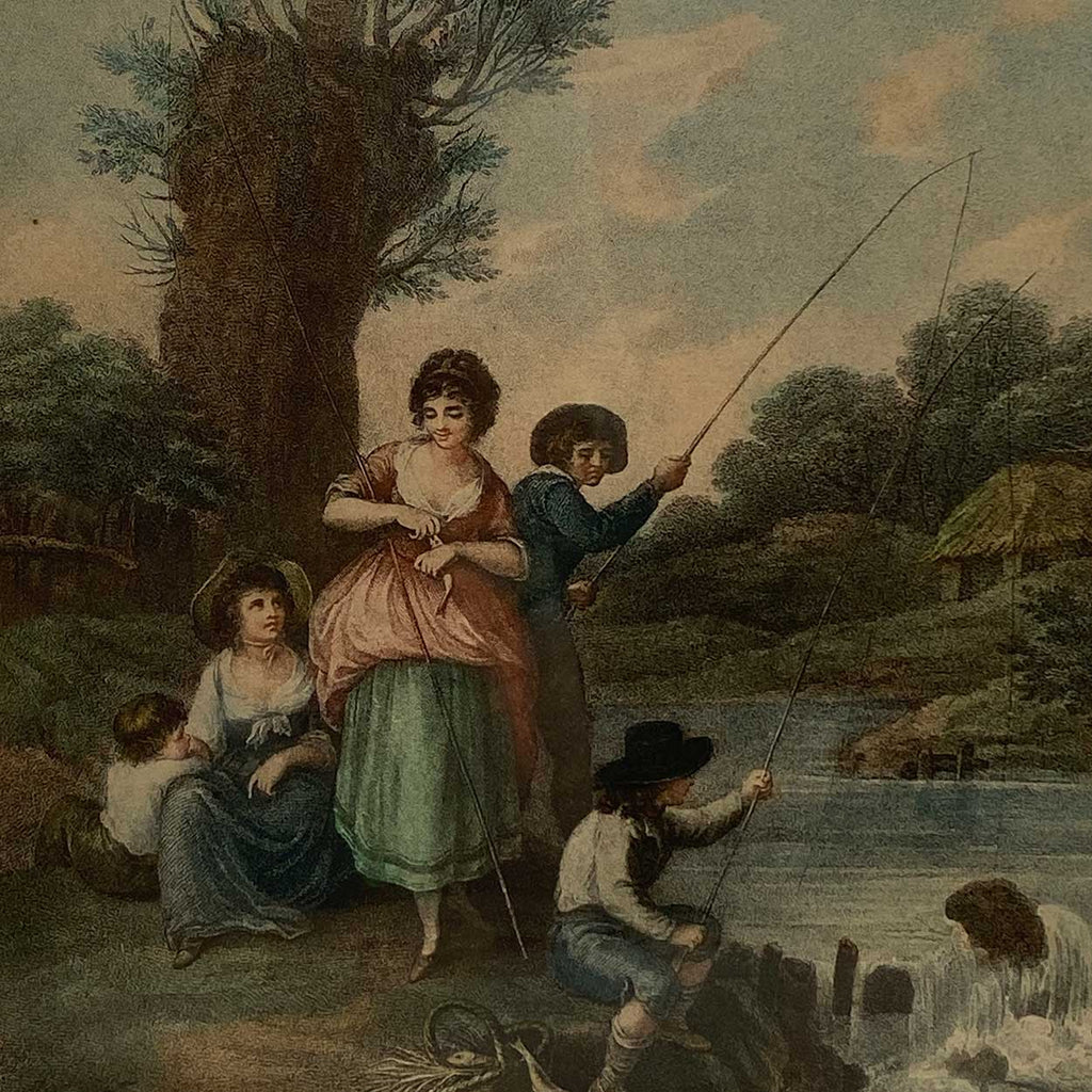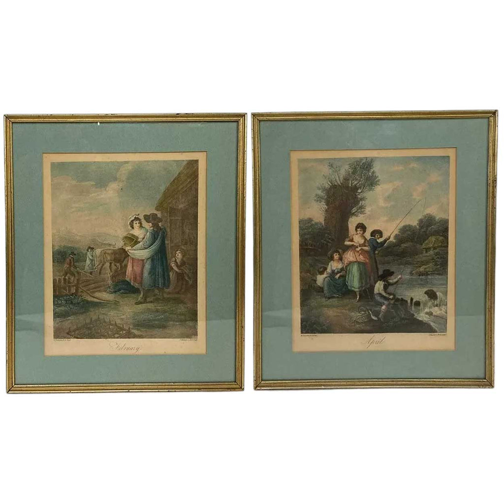 Set of two antique colored engravings from the Months calendar series after original works by William Osborne Hamilton.