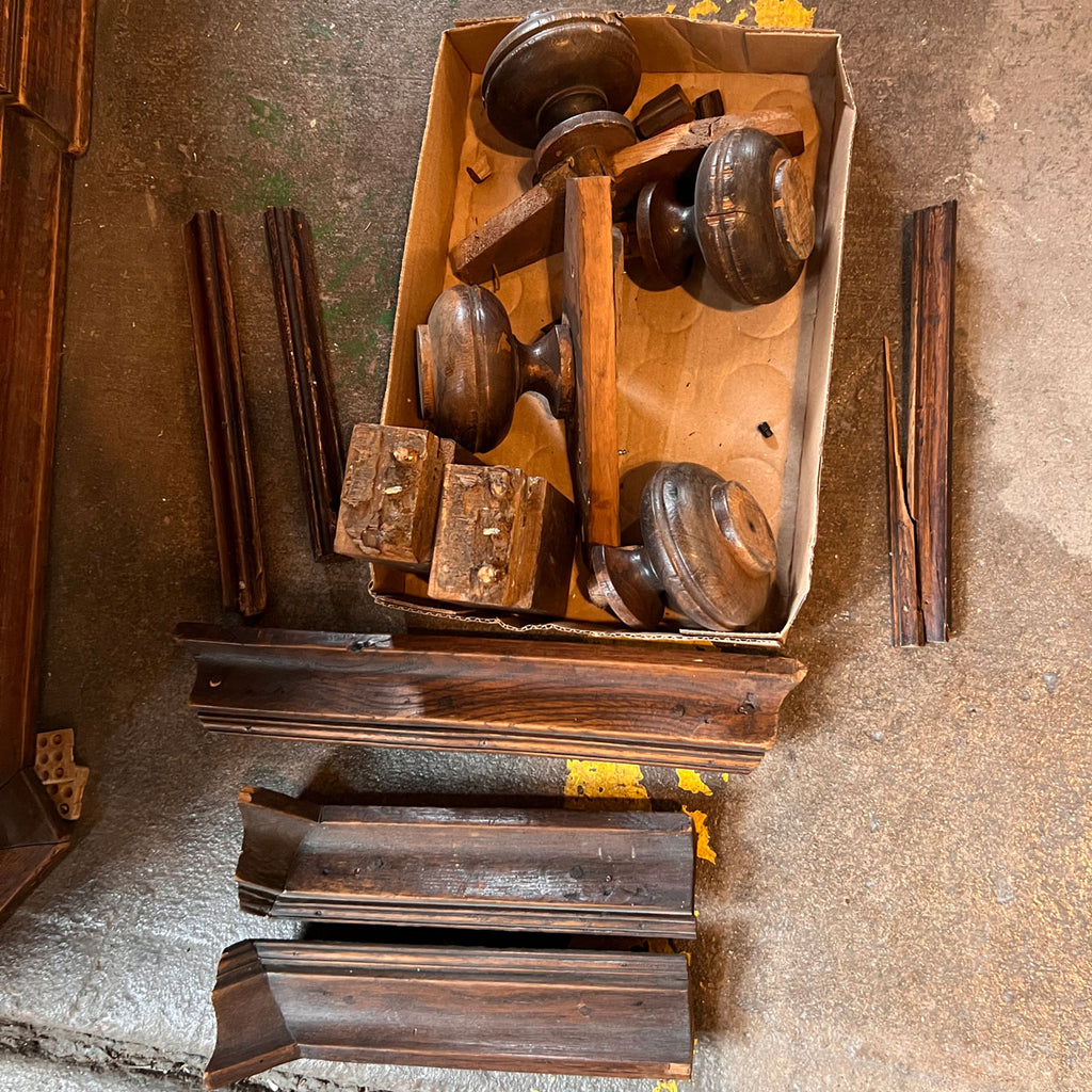 This very attractive, antique display cabinet has a unique canted corner design. The glazed door upper two-door cabinet is fitted with shelves. The closed base is crafted with two frieze drawers over a two-door cupboard with moulded panels and parquetry star decoration and is raised on turned, ball feet. The doors are removable if desired. With keys.