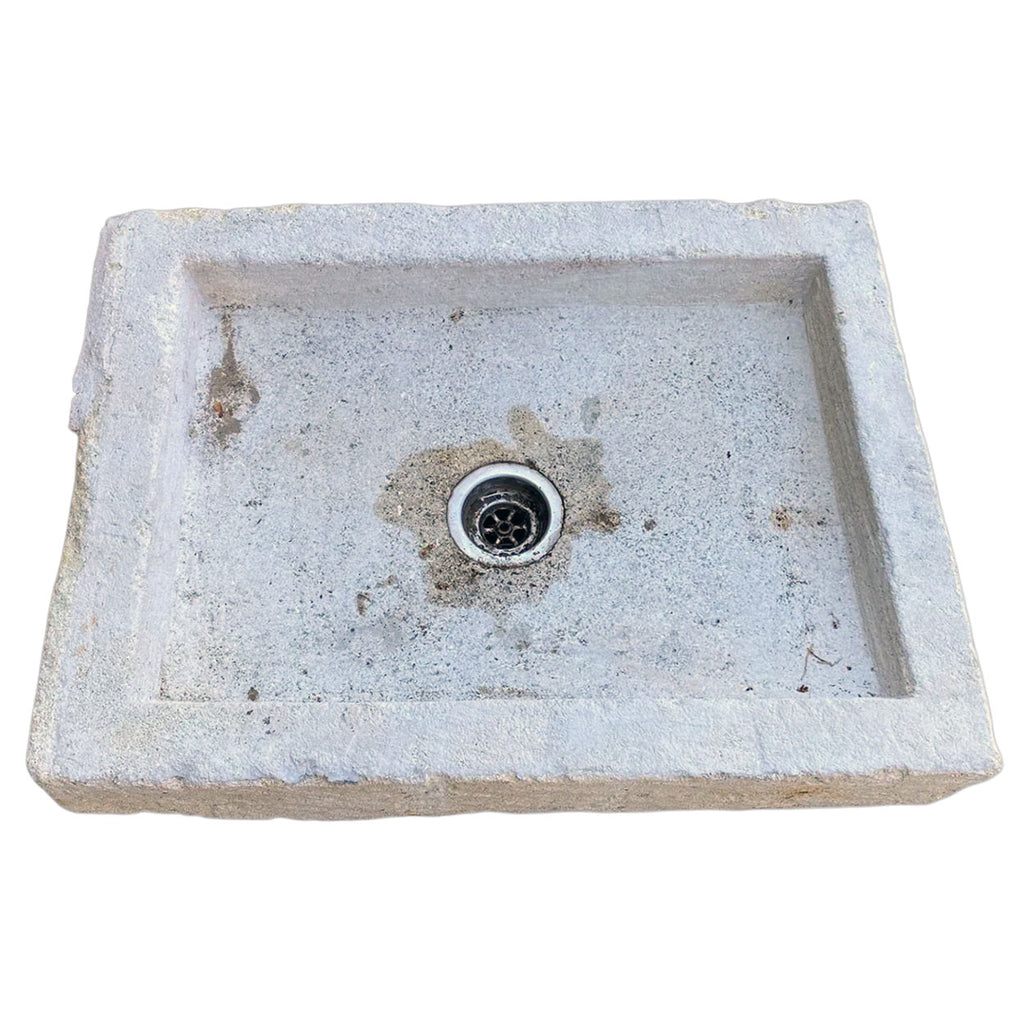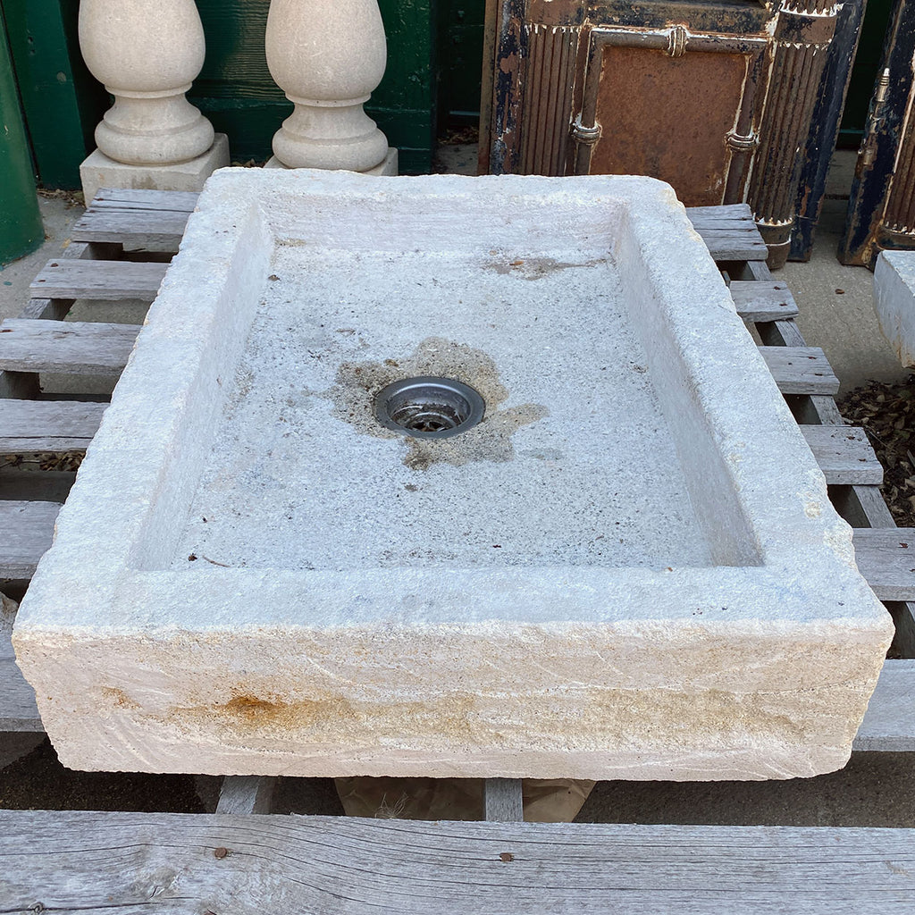 [B] French Provincial Carved Rectangular Limestone Sink Basin. With modern faucet.
