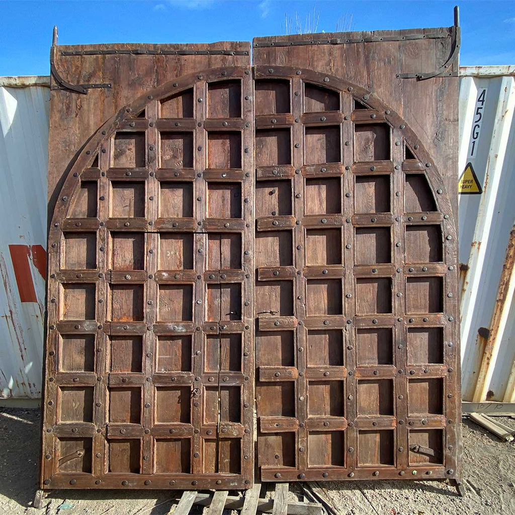 > Lot 0437 | Monumental Indian Iron Nailhead Teak Double Door