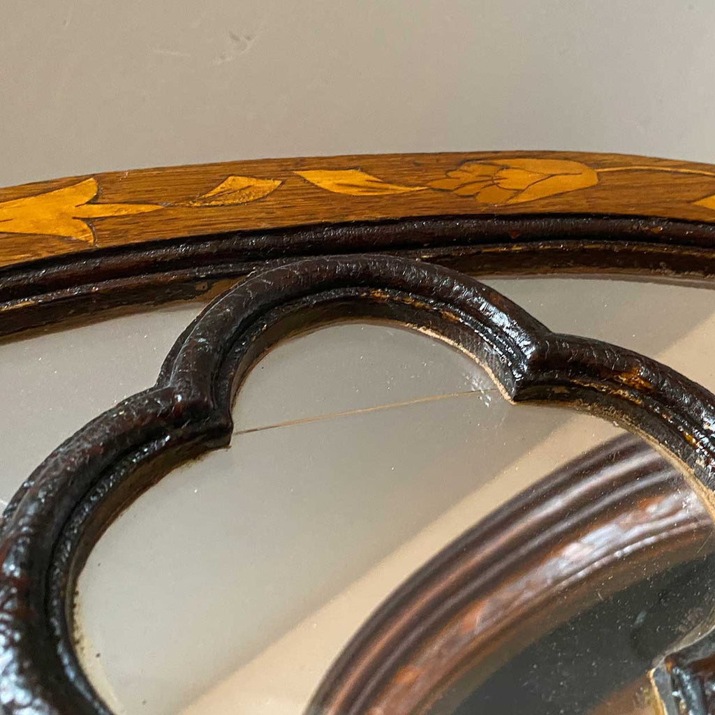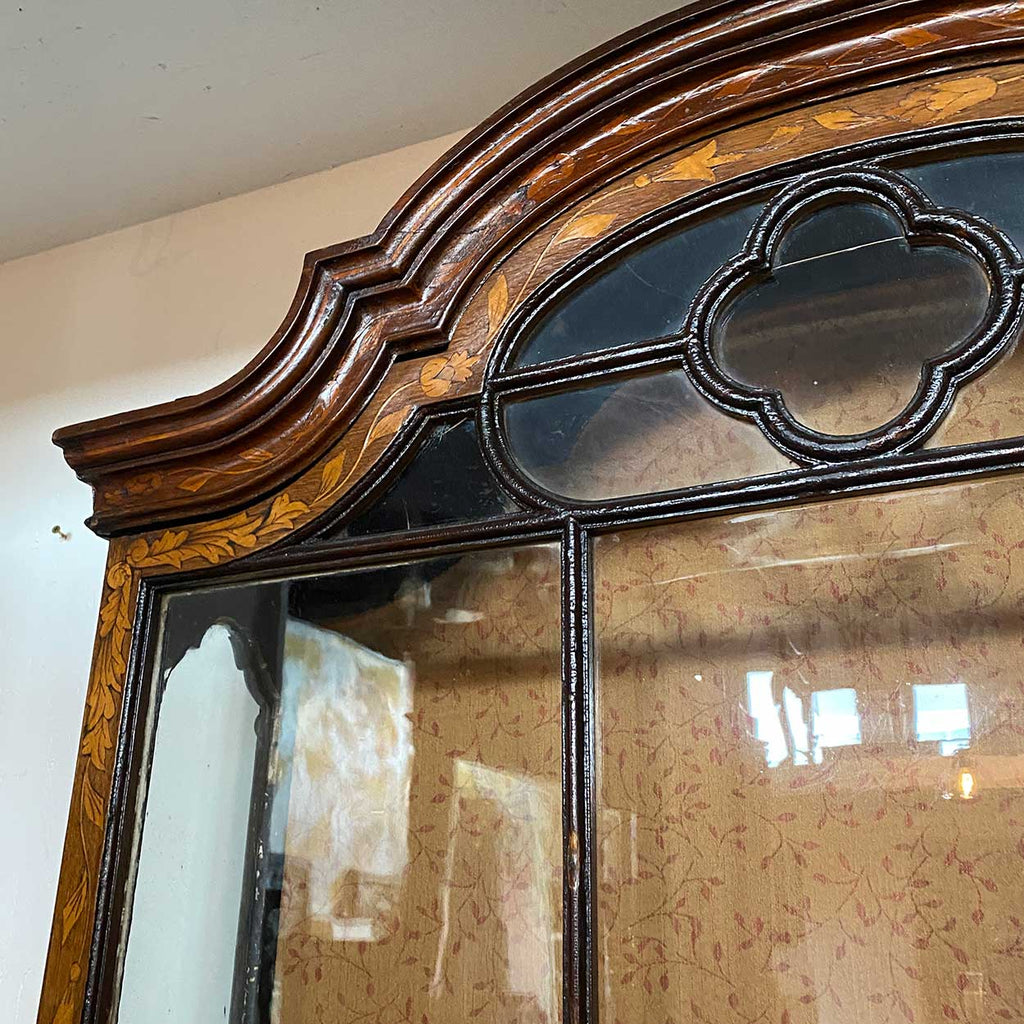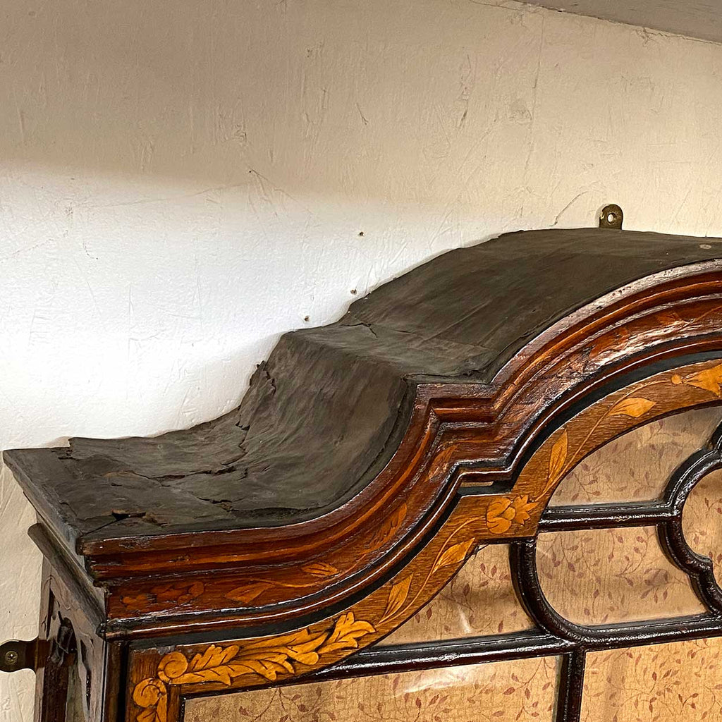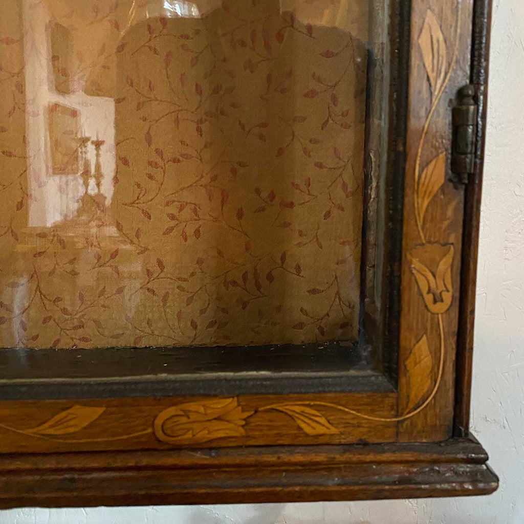 Dutch Walnut and Oak Marquetry Leaded Glass Hanging Vitrine Cabinet