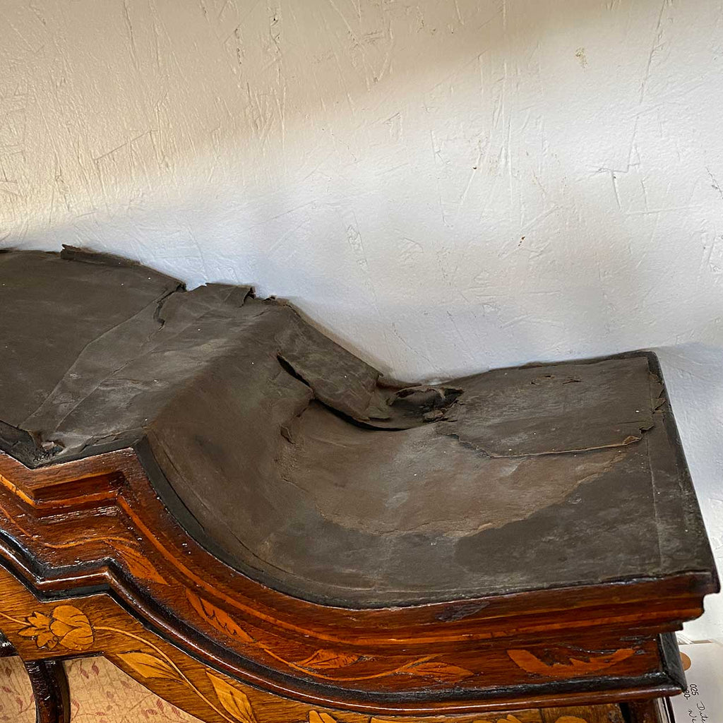 Note: some lacquered fabric lifting (top of case). Some shrinkage cracks.