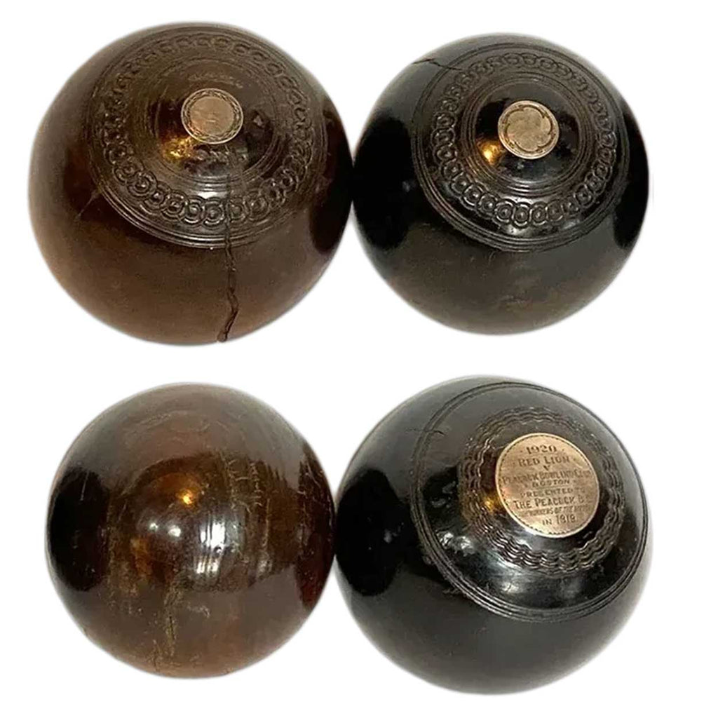 Collection of Four Scottish Thomas Taylor and English Lignum Vitae Lawn Balls