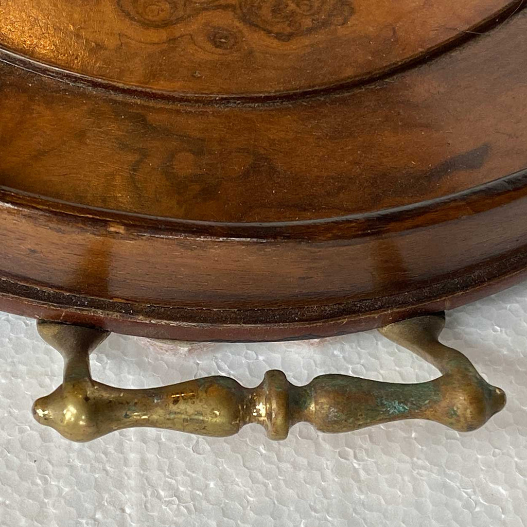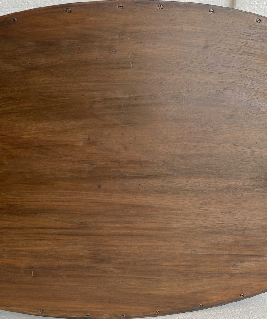 A very large antique, burlwood oval gallery serving tray with two cast brass handles. Could be used as a table top.