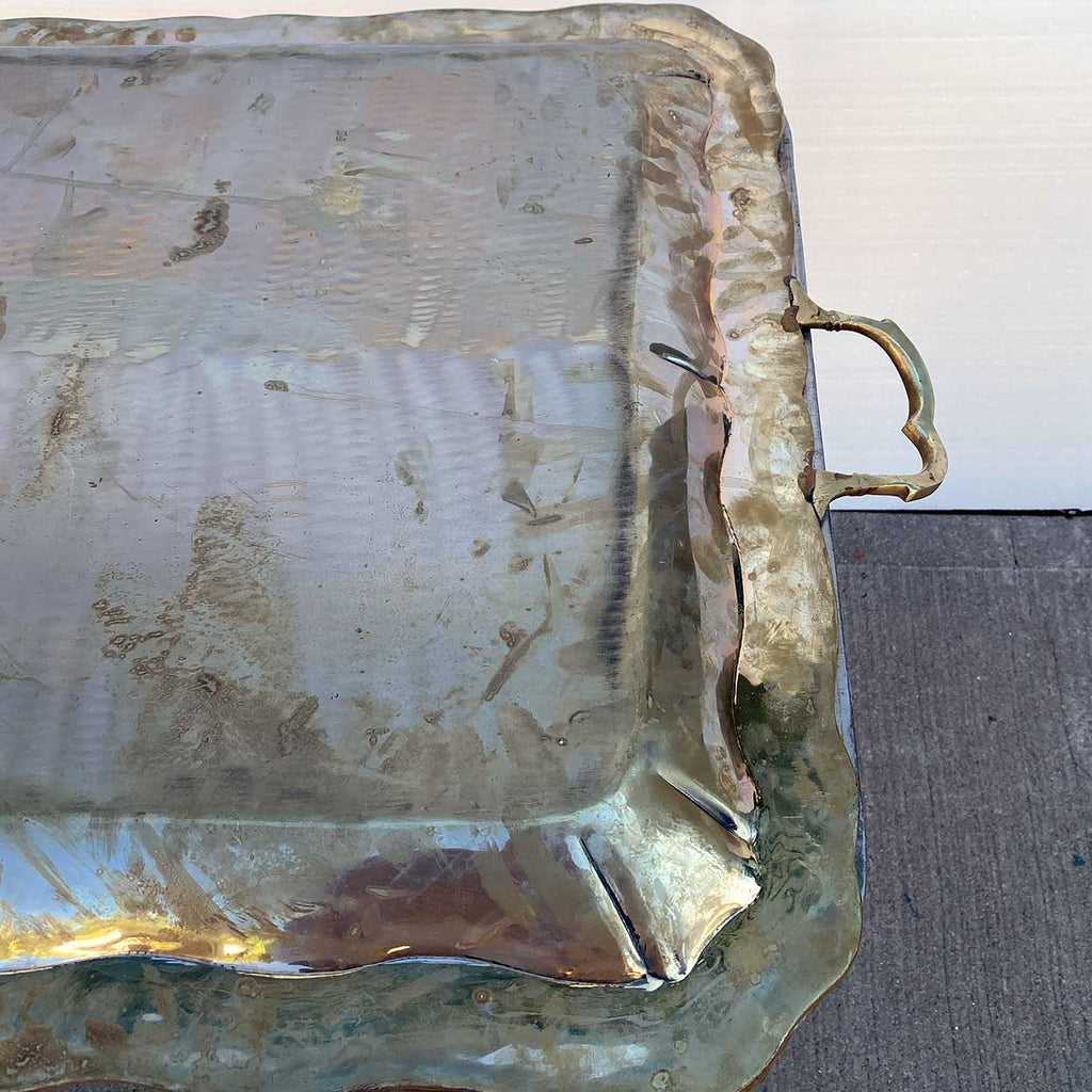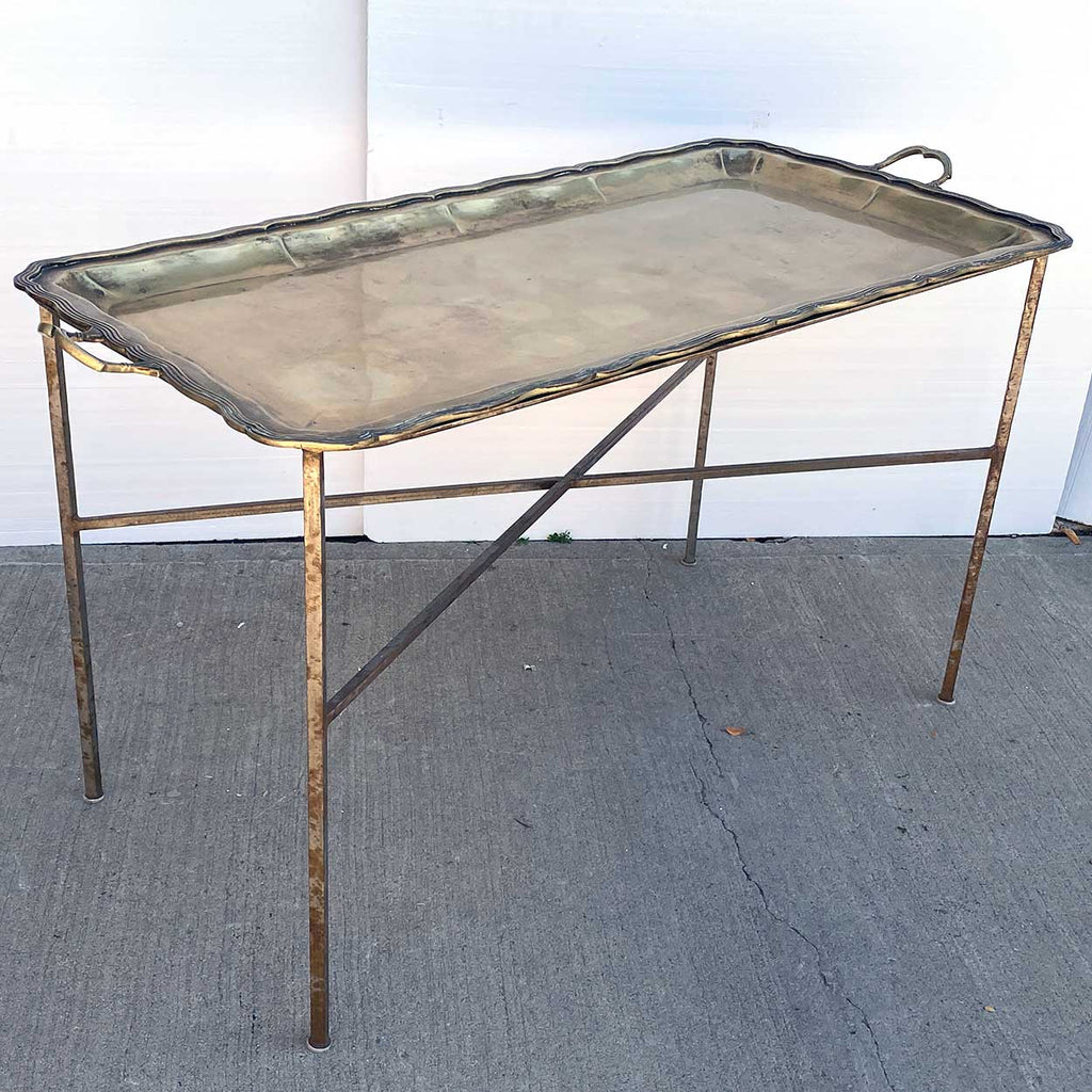 Large Mexican Holler & Saunders Alpaca Metal Tray Wrought Iron Table
