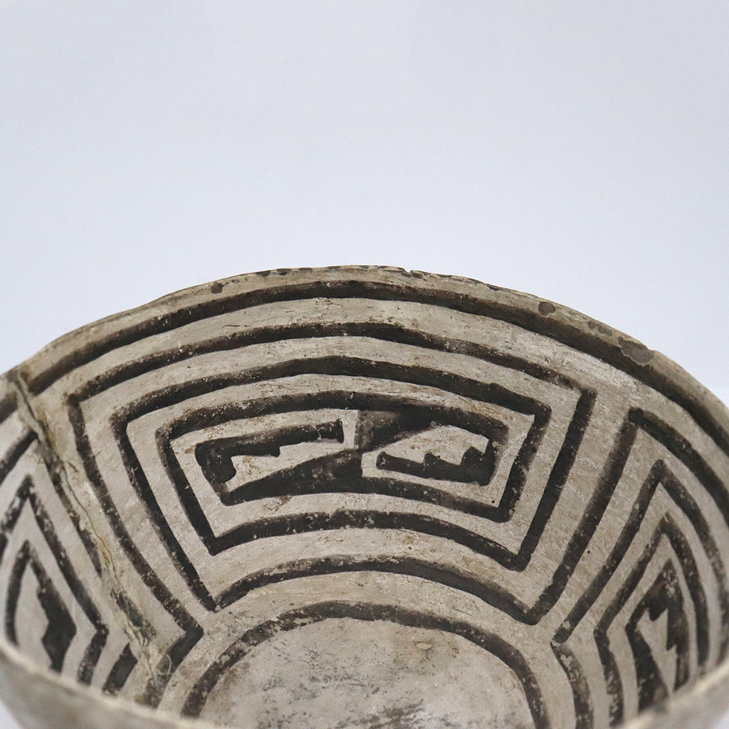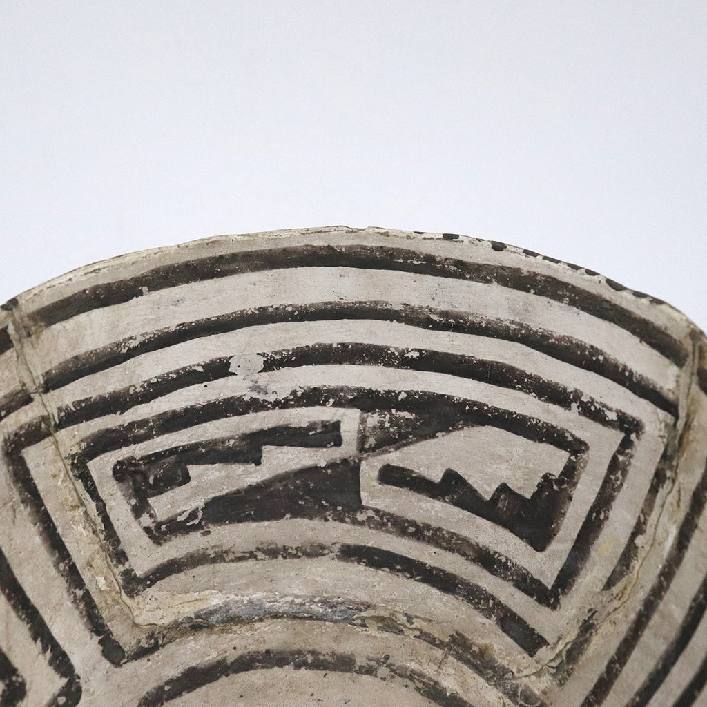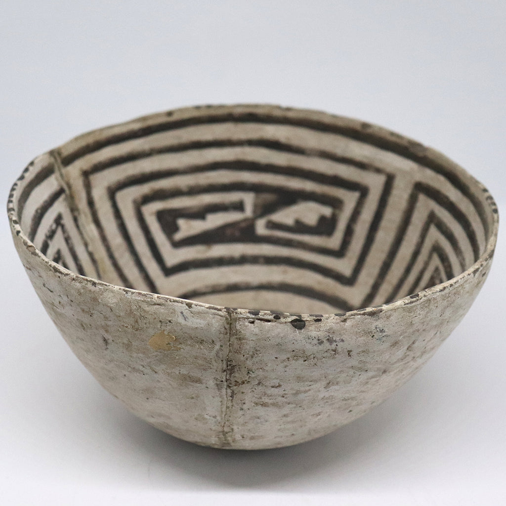 > Native American Anasazi Black-on-White Pottery Geometric Pattern Bowl